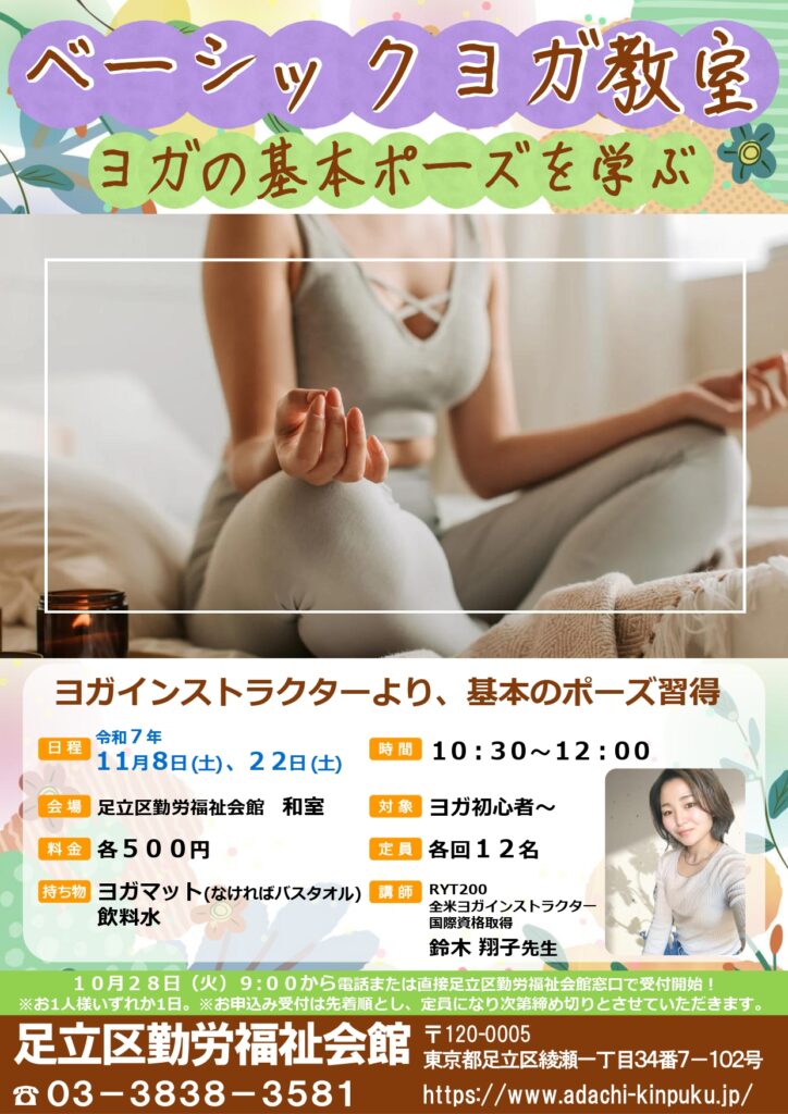 11月は下記の日程でベーシックヨガ教室を開催いたします。