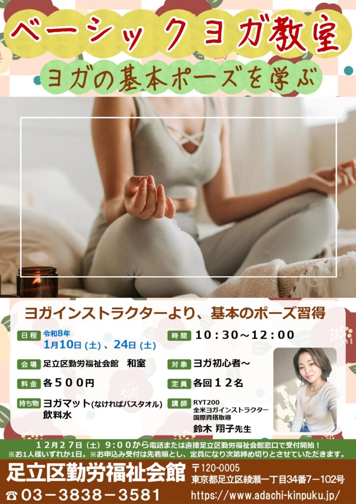 1月は下記の日程でベーシックヨガ教室を開催いたします。