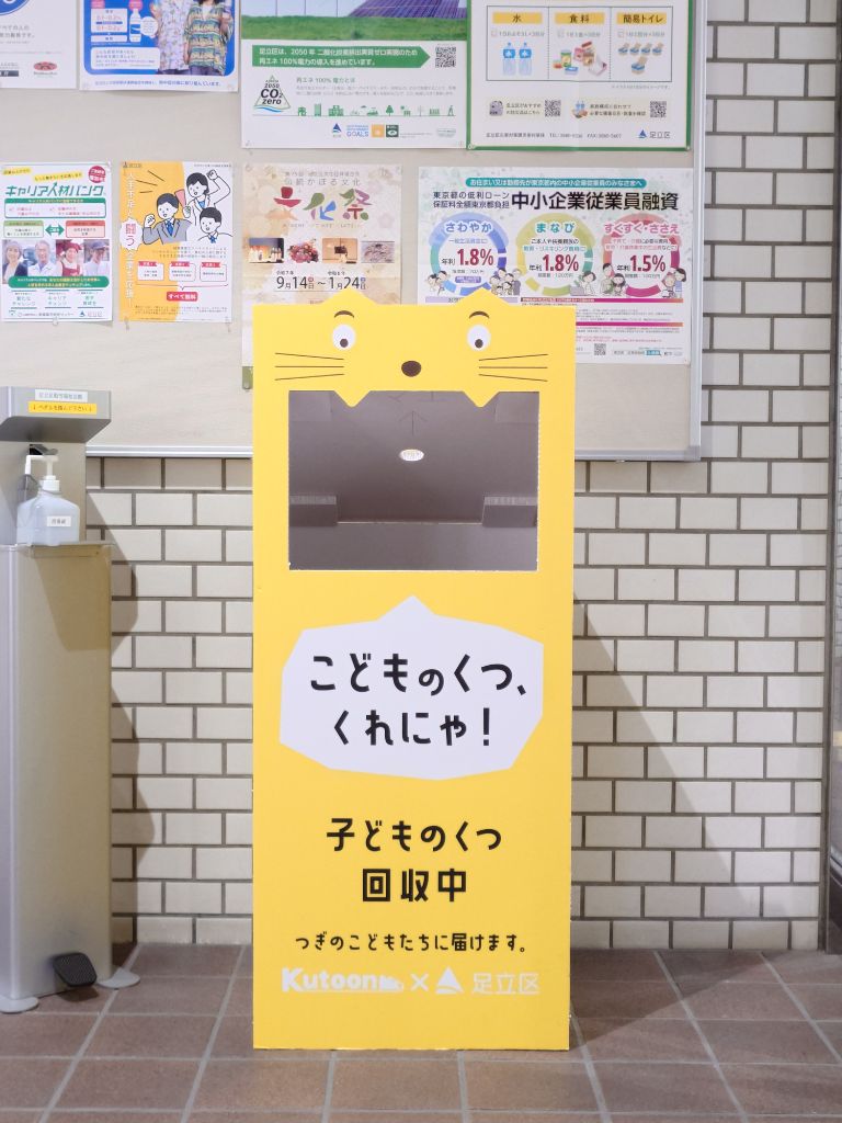 会館入り口に「子ども靴回収ボックス」を設置いたしました。