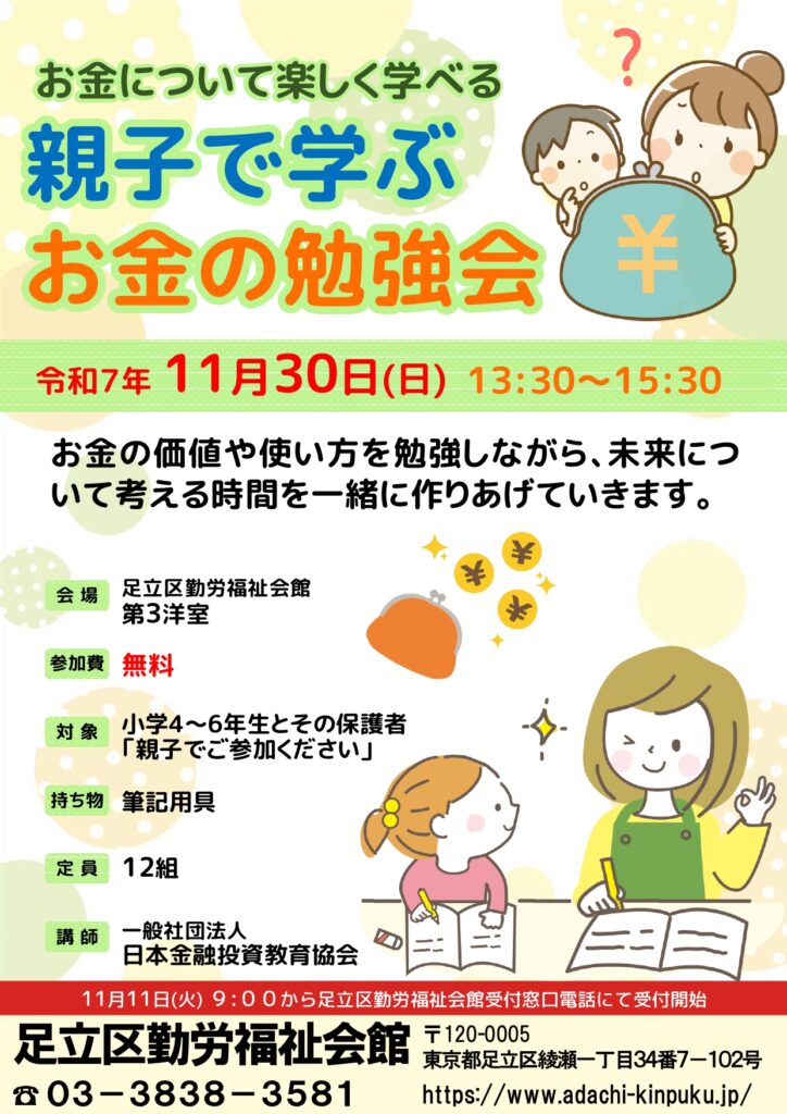 11月30日(日)に「お金について楽しく学べる 親子で学ぶお金の勉強会」を開催いたします。
